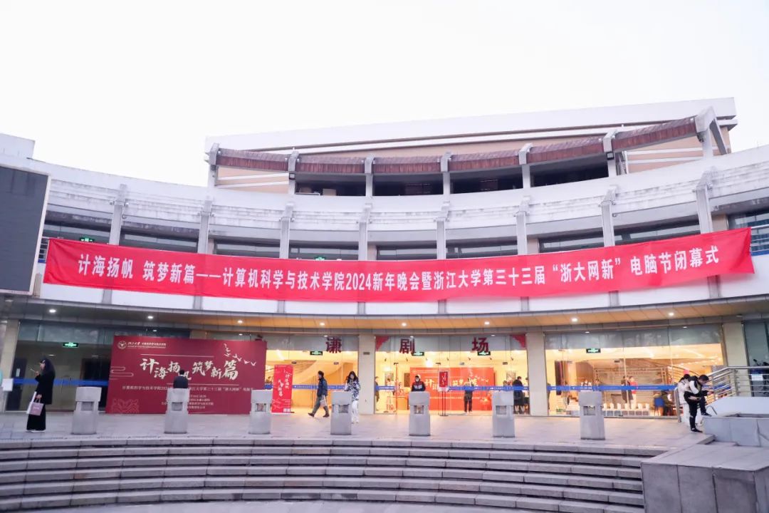 2023年12月26日晚,浙江大学计算机科学与技术学院2024“计海扬帆 筑梦新篇”新年晚会暨浙江大学第三十三届“浙大网新”电脑节闭幕式在玉泉校区永谦剧场隆重举行。计算机学院院长陈刚,党委书记彭列平,副院长尹建伟(兼)、孙凌云,党委副书记陈璞、陈卫,副院长沙威等学院班子成员,师生代表,学院捐赠方代表出席本场晚会。计算机学院本硕博同学、校友等支持学院发展的朋友共聚一堂,共同迎接新年的到来,共同开启2024新篇章。