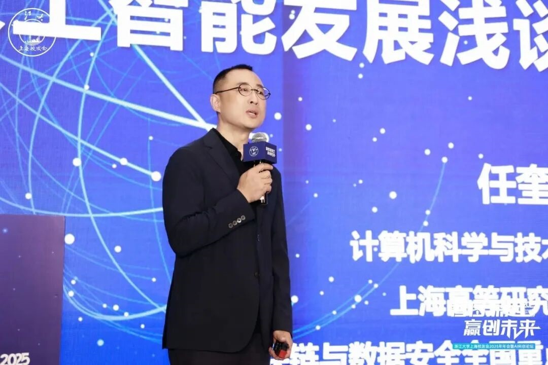 在 AI 科技论坛环节,浙江大学党委常委、副校长黄先海,上海校友会副会长兼计算机与软件分会会长、上海交通大学教授、日本工程院外籍院士李颉,浙江大学计算机学院院长、上海高等研究院院长任奎分别带来了精彩的专题分享。他们深入剖析了科技领域在当前国际形势下的竞争与合作态势,分享了杭州创新迸发现象的一范式三进制经验,详细阐释了人工智能、大数据与区块链这三大前沿技术的深度融合与创新发展路径,通过丰富的行业案例,生动展现了技术融合趋势对各领域的推动作用。