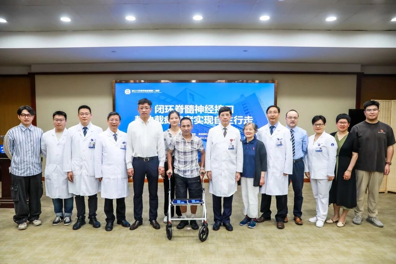 由浙江大学脑机智能全国重点实验室联合南湖脑机交叉研究院、附属第二医院、生仪学院、计算机学院等,成功完成国内首例闭环脊髓神经接口植入手术,让截瘫的金大叔在术后第15天,成功实现自主站立及行走动作;术后2个月,已能够实现多种日常活动。此项研究的成功,标志着我国在脊髓神经接口及神经功能重塑领域又取得了重要突破,为我国370万脊髓损伤患者功能恢复带来福音。