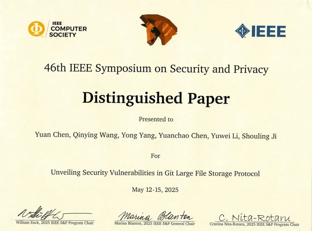 9.我院NESA实验室获信息安全领域顶会IEEE S&P 2025杰出论文奖