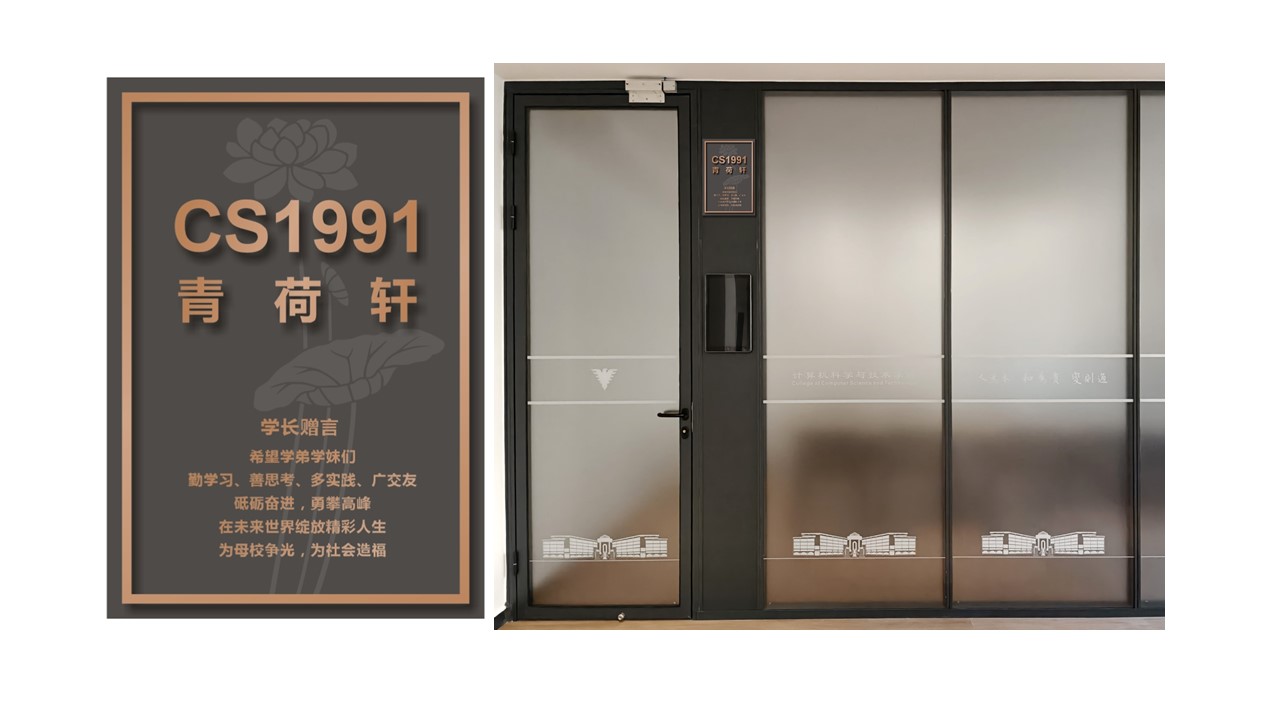 曹光彪主楼113室作为学院会议室被冠名为“CS1991青荷轩” ,由计算机学院1991级校友集体捐赠。“青荷”寓意“青春如荷,出淤泥而不染”,既是对当年纯粹求学时光的致敬,也寄托着对后辈学子坚守初心的期许。捐赠代表张宏武表示:“我们无法回到过去,但希望能为未来的学弟学妹留下一点支持和鼓励。”