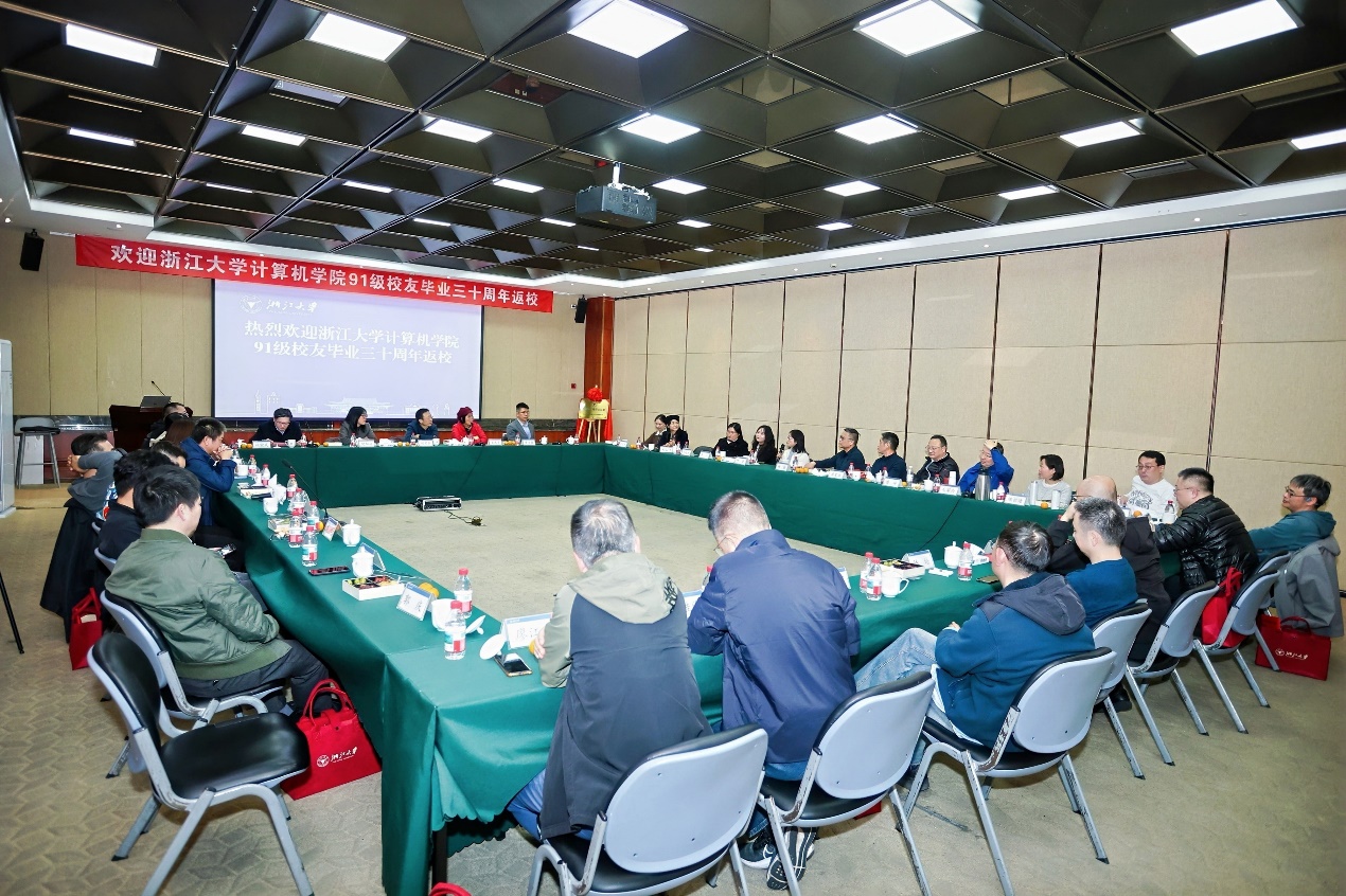 11月22日,浙江大学计算机科学与技术学院1991级校友毕业30周年返校活动在玉泉校区圆满举行。30余位校友从五湖四海奔赴求是园,重聚曹光彪高科技大楼,共忆青春岁月,共话学院发展,并集体捐赠“青荷会议室”,以赤子之心反哺母校,为学院人才培养与学术交流注入新活力。计算机学院党委书记胡昱东,副书记倪加旎,原党委副书记龚惠香,学院发展中心主任章方铭和学院91级校友代表出席座谈会,会议由张宏武校友主持。