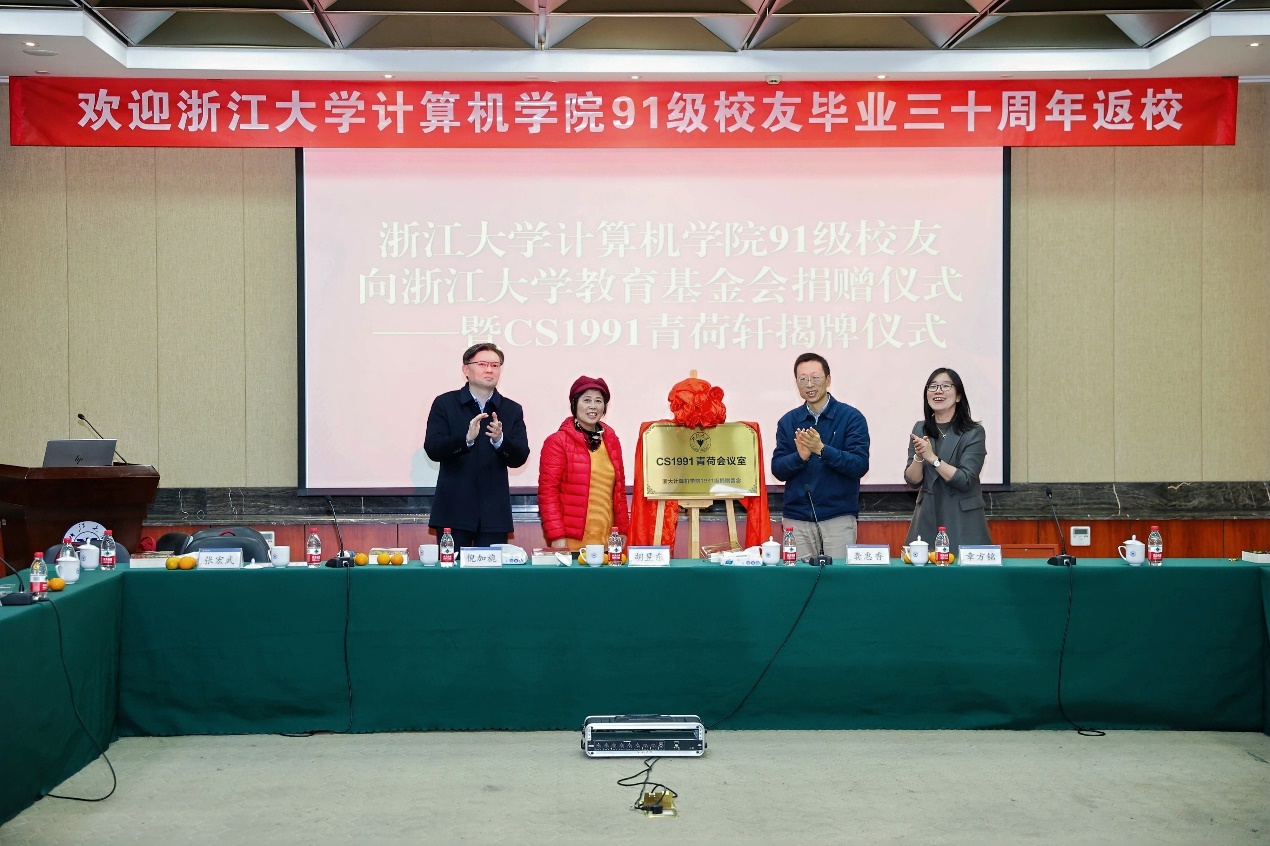 学院代表和校友代表为CS1991青荷会议室揭牌